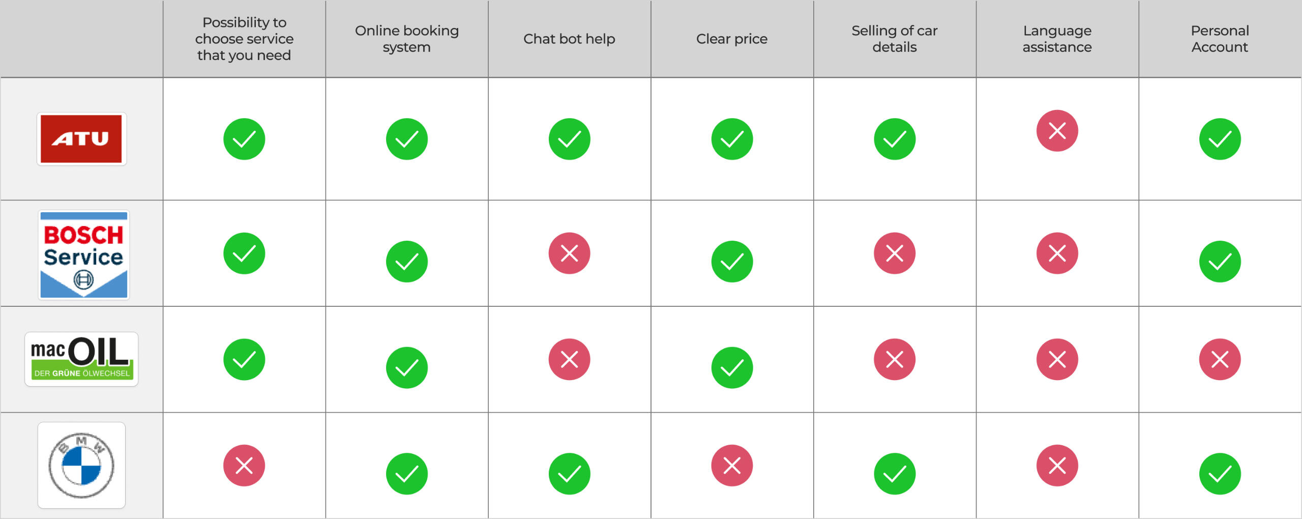 I did an analysis of the competition and found out that a feature like online booking is in demand and has a good performance. Chatbot is quite an interesting feature, but it has only worked well in large and networked companies, so we had to exclude it at this stage. The ability to have a personal account increases the attractiveness for users, so it will be useful to add this feature to the website.