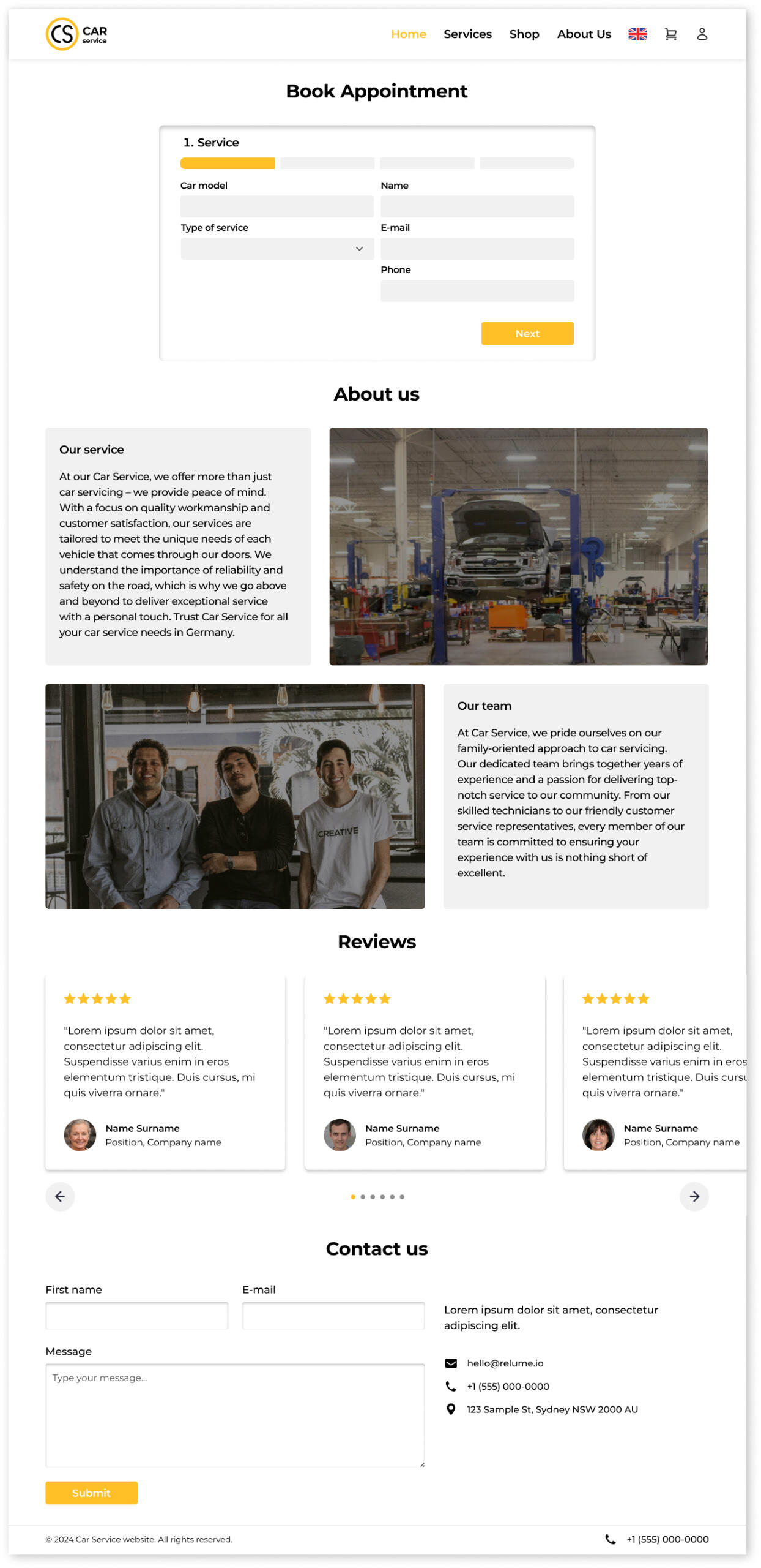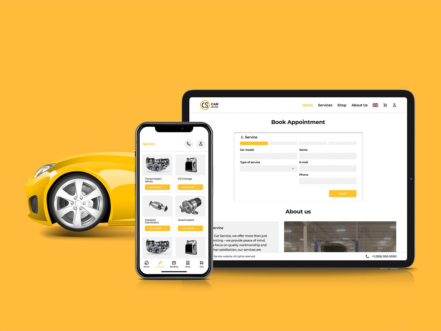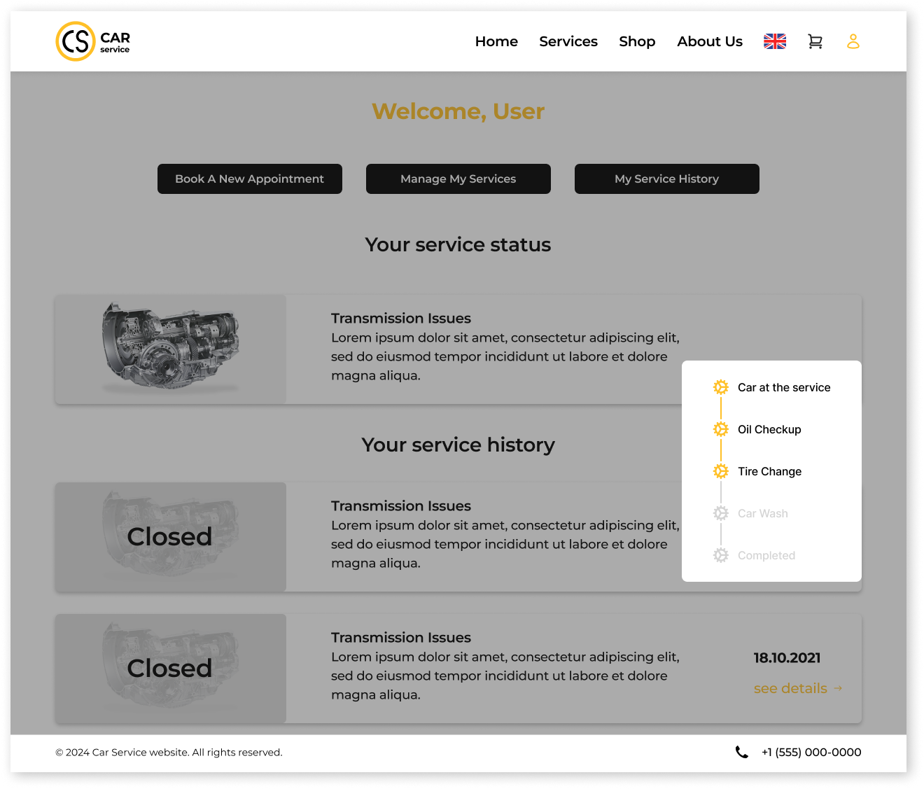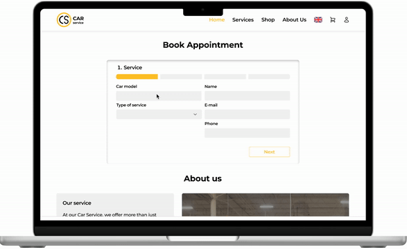 The main feature is that the online booking form is located on the main screen. This is done so that users can easily satisfy their basic need - to book an appointment with a car service. The site allows users to register and have their own personal profile, so they can track the status of their car repairs in real time.
