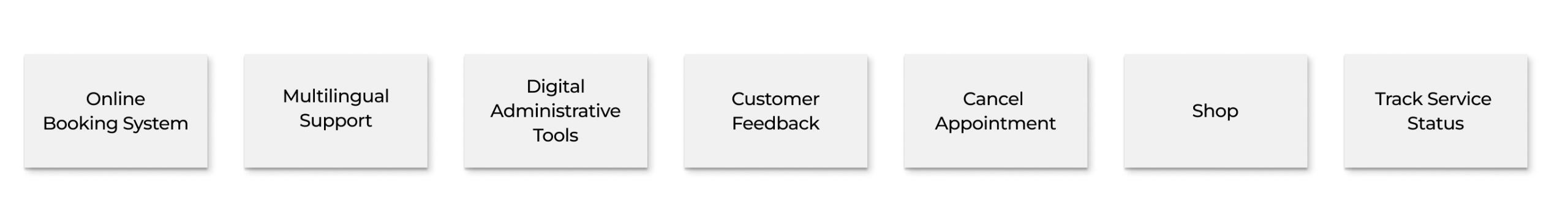 Based on my observations and insights, I created a list of features that can help users in their needs. I envisioned an online booking system that would allow customers to schedule appointments easily through a website or mobile app. Recognizing the language barrier some customers faced, I proposed multilingual support, ensuring service information and booking options were accessible to non-German speaking customers.I also saw the need for digital administrative tools to streamline paperwork and administrative processes, reducing the burden on staff. To foster continuous improvement, I designed a customer feedback system to collect and analyze customer feedback regularly.