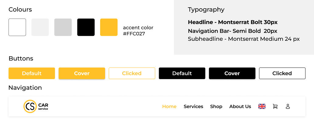 The design of the map service had to be minimalist, versatile and clear. Therefore, I chose an accent color - yellow. This color harmonizes with black, gray and white and goes well with other elements of UI.