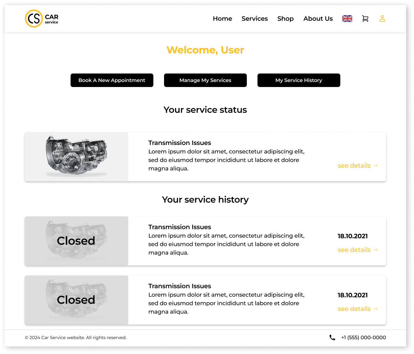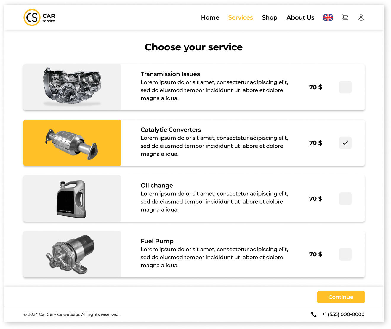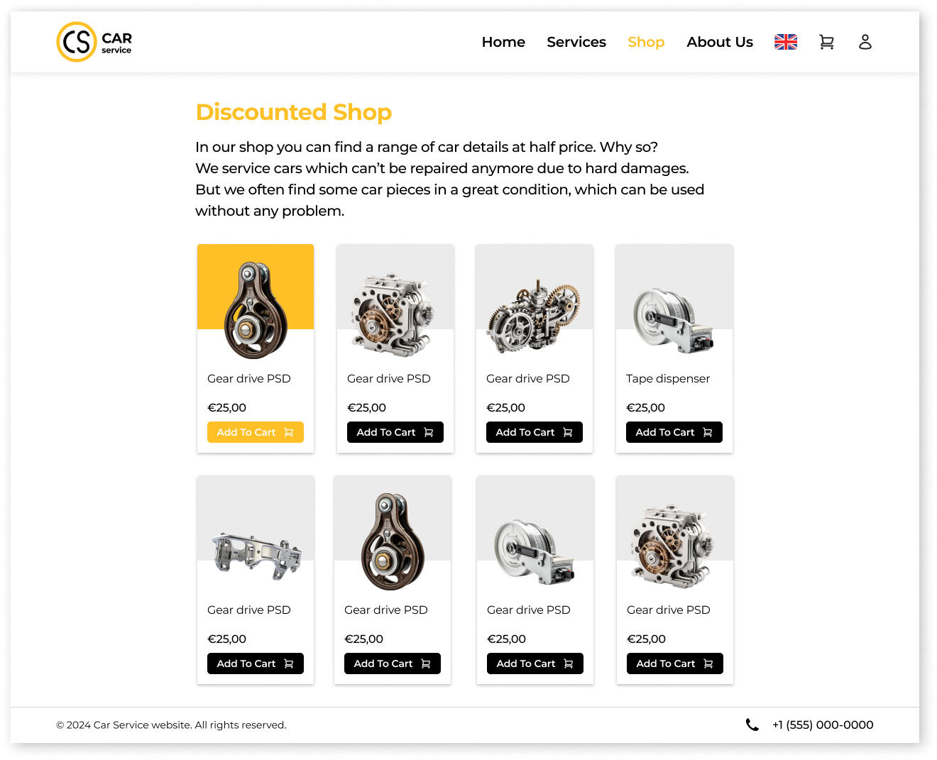 As an additional business opportunity for the development of this car service, the sale of used car parts has been implemented in a separate page on the website, the "shop".