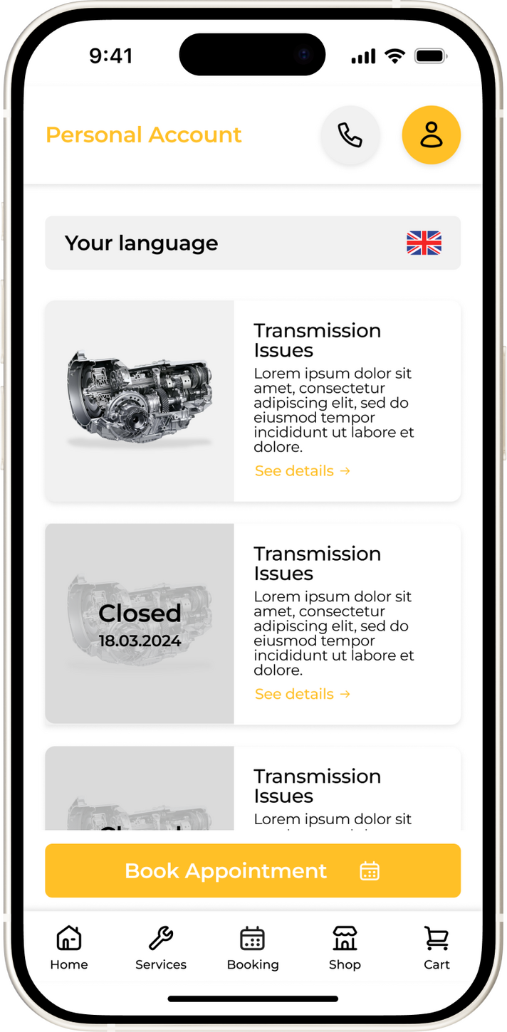 To extend the digital experience beyond desktop, my colleague and I developed a concept for a mobile application tailored to the needs of both customers and staff. The goal was to offer on-the-go access to essential features like appointment booking, real-time service updates, and digital documentation. This mobile solution would help the business stay connected with clients, improve communication, and streamline workflows — ultimately supporting a more flexible and modern service model.