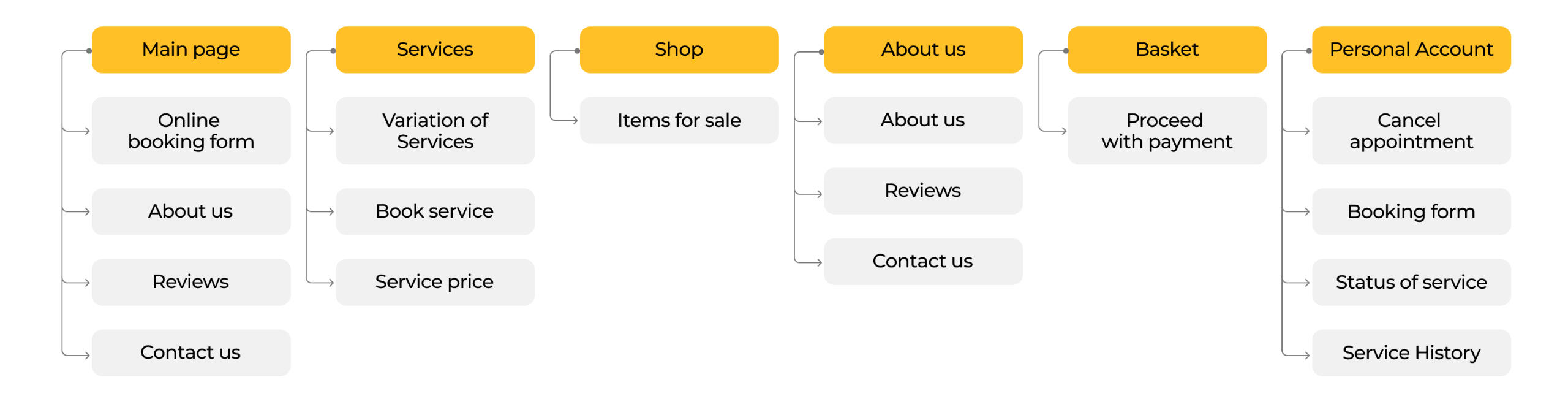 The website map was developed and countered using the card sorting method. The main function of the website is the ability to book an appointment online, so the booking is right on the home screen.